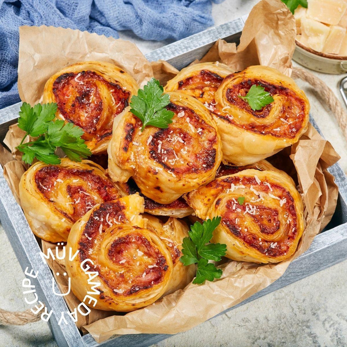 - Bake in the preheated oven for 15-20 minutes, or until the pinwheels are puffed up and golden brown.